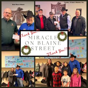 Starting in 2010, Caldwell Night Rodeo’s board of directors decided their annual Christmas party was a great time to raise a little money to give back to our community. So became Miracle on Blaine St and now Miracle on the Dirt, our holiday benefit auction that has help numerous causes over the years such as Boise Rescue Mission, YMCA, the Boys and Girls Club of Caldwell, the Caldwell Veterans Hall and more. The community gathers to enjoy a good barbeque meal, silent and live auction and if you’re lucky you may spot a few professional cowboys and cowgirls at the event too!