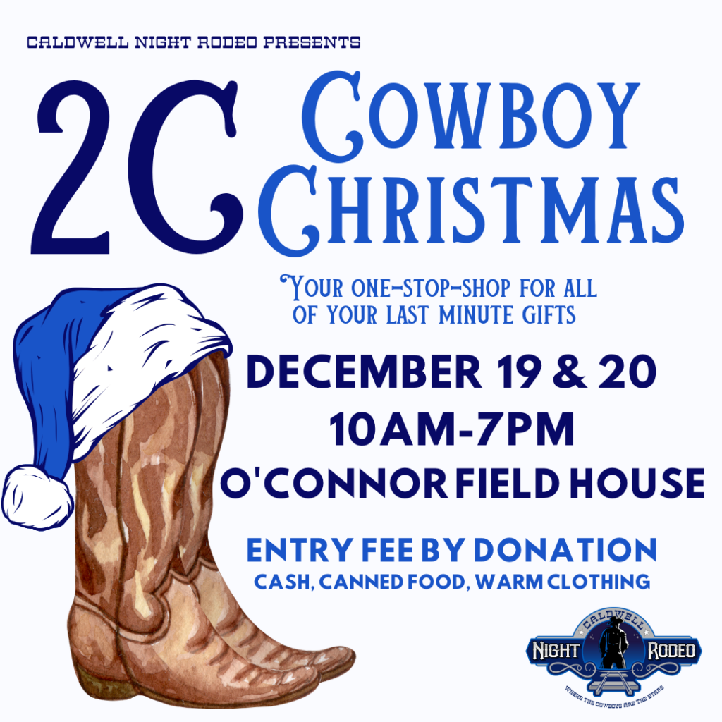 2C Cowboy Christmas is a vendor fair hosted by Caldwell Night Rodeo and the City of Caldwell each December. Beginning in 2021, it is a western style one stop shop to finish up all your holiday shopping.